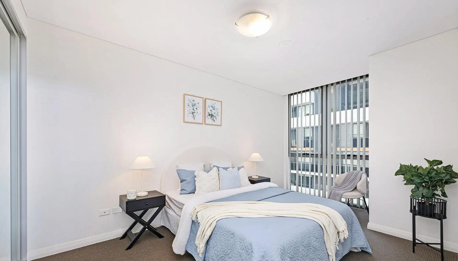 - Emotional warmth. In the bedrooms, layered throws and soft blue accents softened the otherwise plain architecture, making the space feel lived-in rather than clinical.