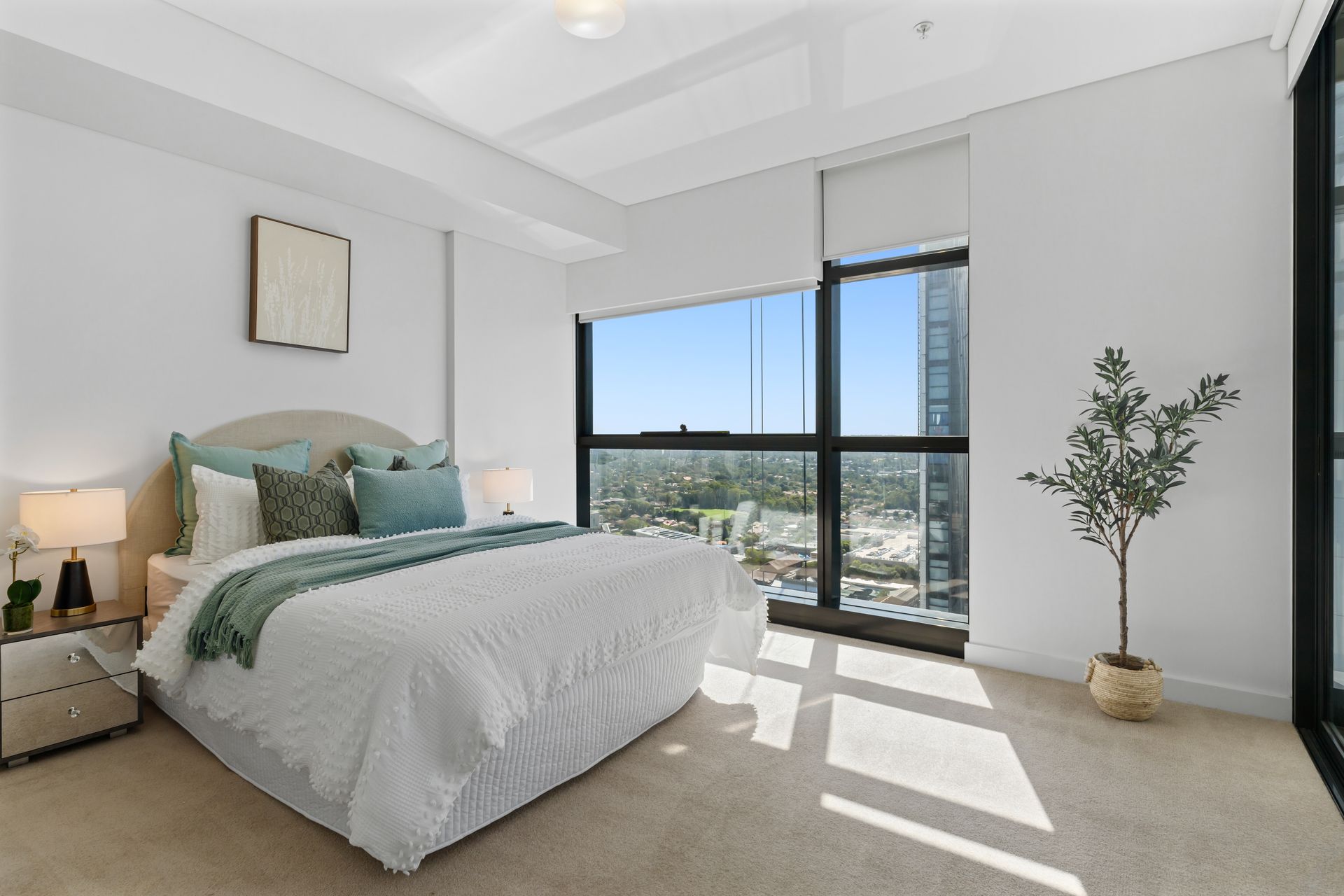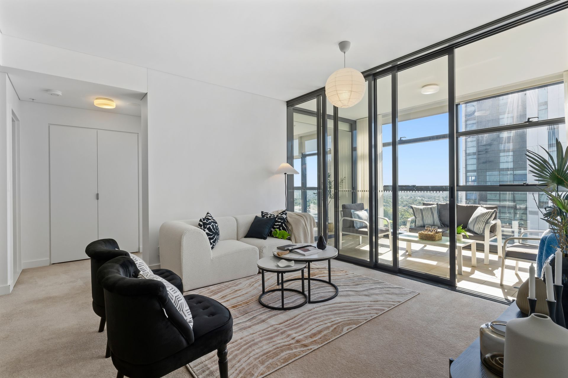 Keys arrived on a Friday morning. The stylist walked the apartment alone — thirty-fifth floor, north-east aspect, afternoon sun already cutting through the balcony glass and flooding the living area. The space had everything it needed: height, light, proportion, a generous balcony with suburban views that ran all the way to the horizon. What it did not have was a single reason for a buyer to feel anything about it.