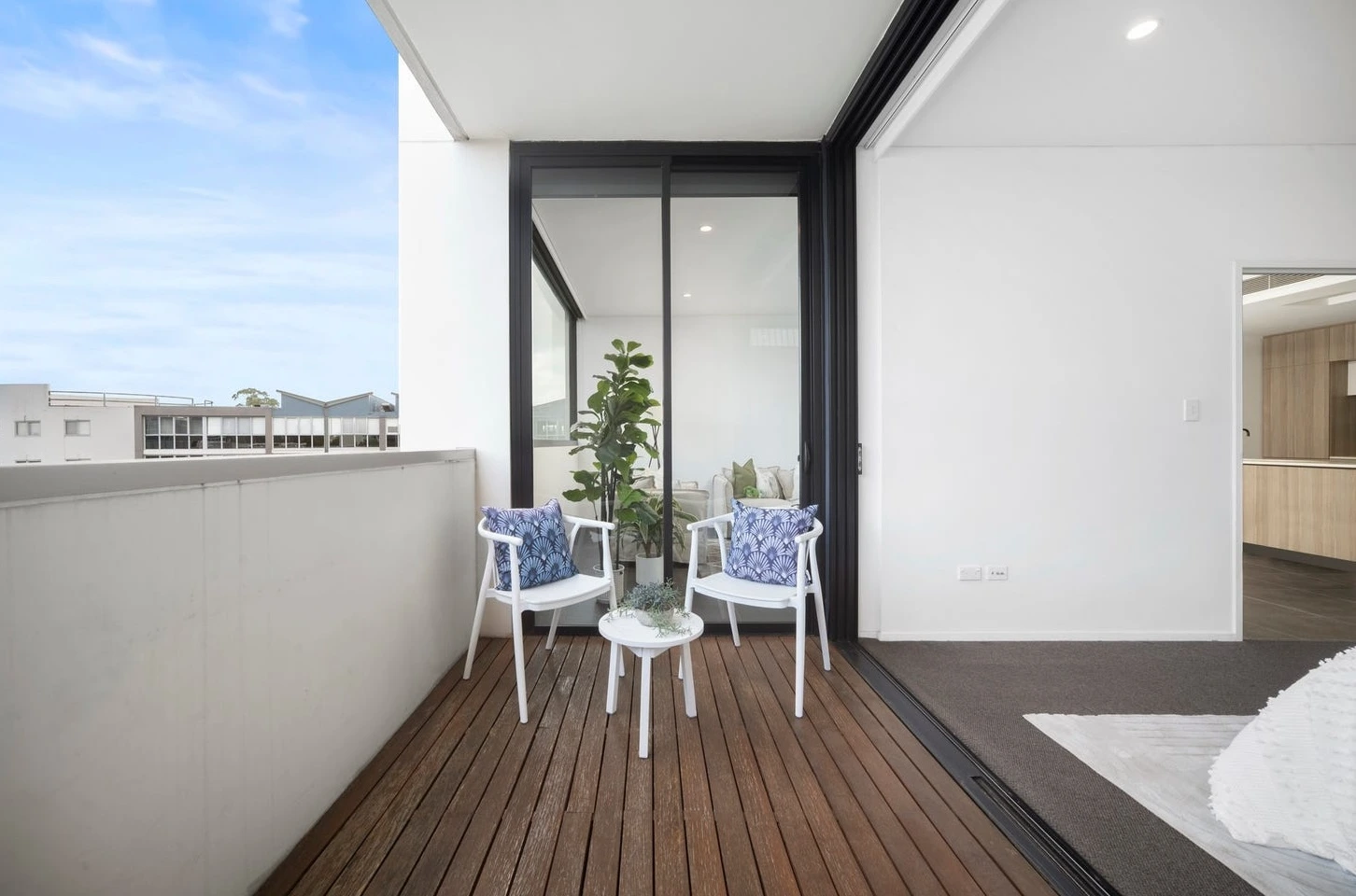 Even the balcony mattered. Two chairs, a small table, greenery — enough to turn it from “extra space” into a lifestyle moment.