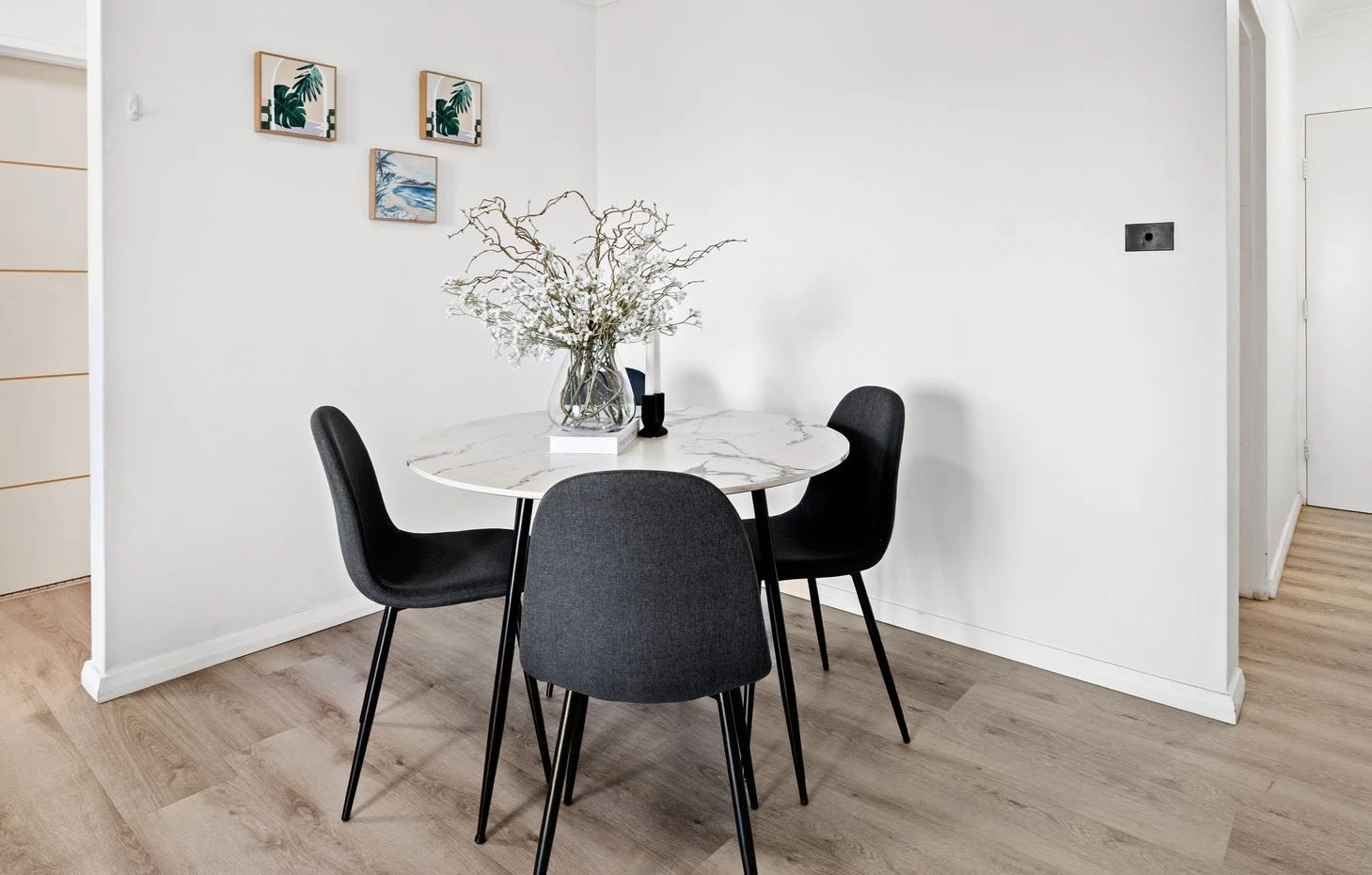 Because without staging, apartments like this can photograph as generic. White walls, timber-look floors, practical kitchen, decent balcony… buyers scroll past it as “fine”. And “fine” is where listings go to quietly die for three weeks while everyone pretends it’s still “early days”.