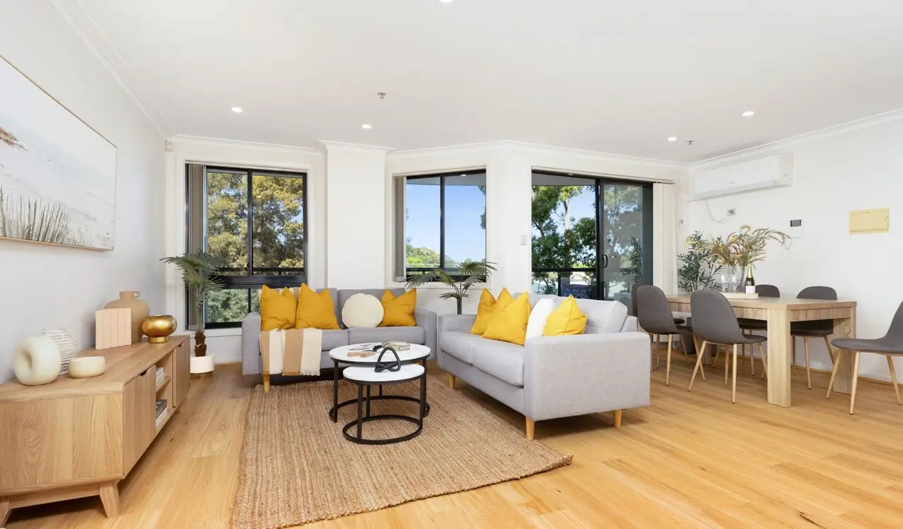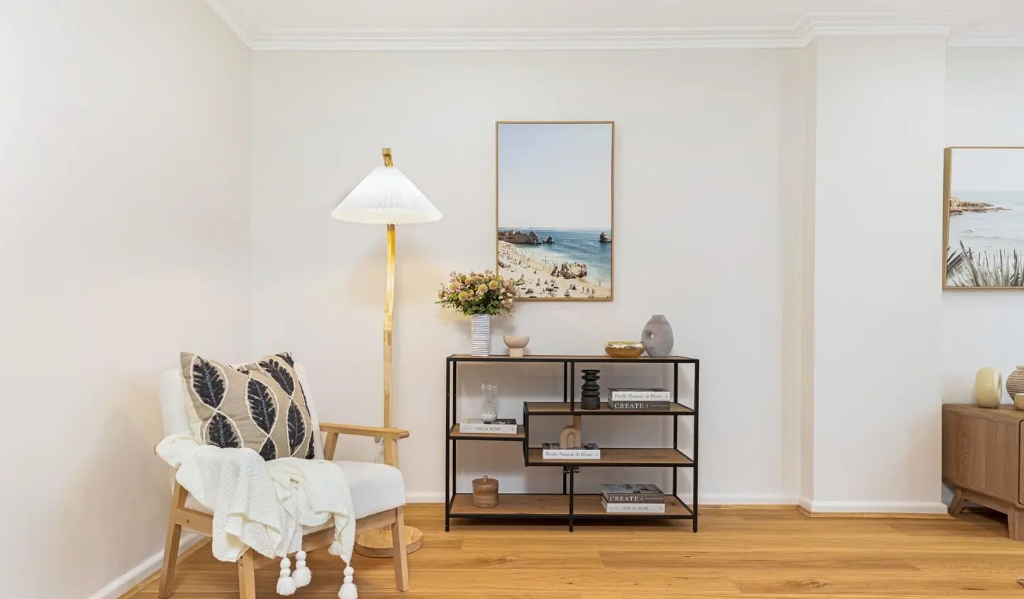 The brief arrived with a sigh: “It’s a nice, big complex… but the apartment feels flat. Same-same as every other unit in Westmead.” Recently refreshed with new floorboards and paint, 404/91B Bridge Road looked clean and echoey—more checklist than heartbeat. The open-plan living stretched long and skinny; buyers drifted from kitchen to balcony without stopping, and the boxy corners made the room feel like a corridor. Add the usual investor neutrals and a view that skimmed treetops while hinting at towers beyond, and you’ve got the hardest brief in Sydney: make a resort-style, mid-rise apartment feel like home.