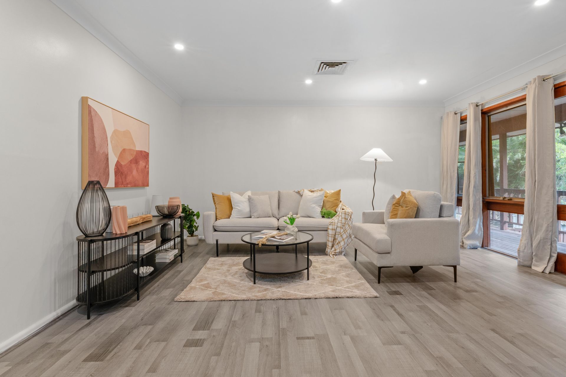 Q: How do you stage a 1970s home with dated timber joinery without making it look tired? A: The timber is the architecture — fighting it never works. Goldpac builds a palette that befriends the existing warm tones, usually through terracotta, dove-grey, and cream accents that pull the orange timber into the room as a feature rather than a flaw. Buyers then read the home as "character," not "dated."