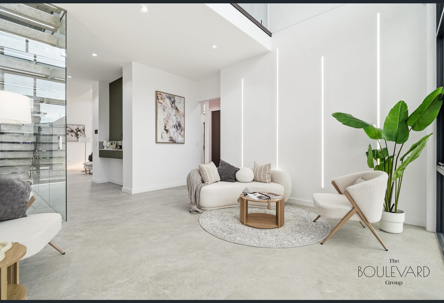 That is the problem with photographing a house like this empty. The architecture is extraordinary — but architecture without furniture is a construction site with clean floors. Stone reads as cold. Voids read as echoey. A four-and-a-half-metre ceiling with nothing below it reads as a warehouse, not a living room. Buyers scrolling through Domain at ten o'clock at night see empty rooms and move on. They do not stop to measure ceiling heights. They do not imagine where the sofa goes. They see marble and they feel nothing. And in Marsden Park, where the median house price sits at $1.21 million and this listing is positioned well above it, the photography needed to do more than document the finishes. It needed to make someone feel what it would be like to live here.