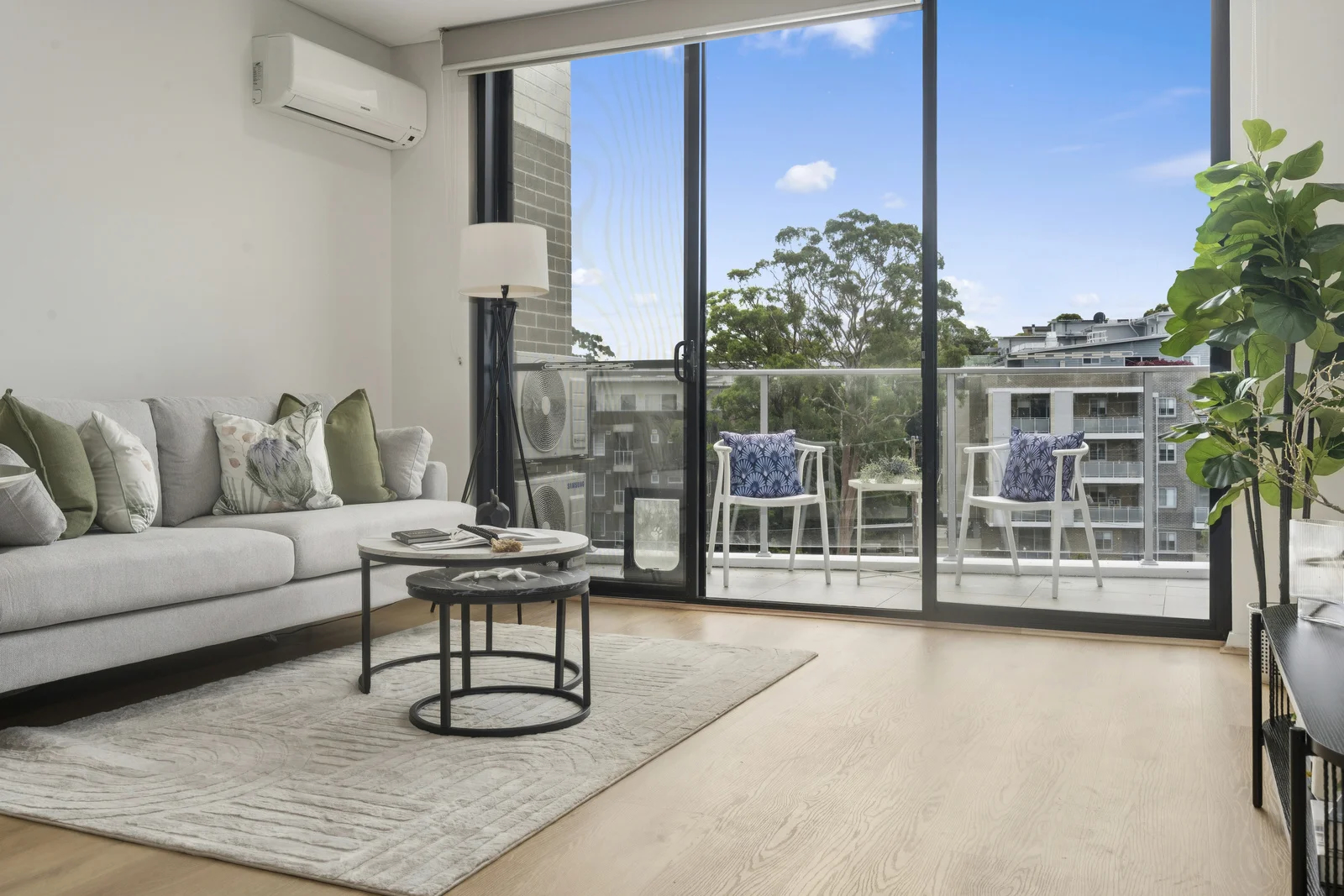 A compact Asquith apartment on the Pacific Highway, a north aspect the listing almost wasted, and a staging brief built to answer one question: can 84 square metres feel like enough?
